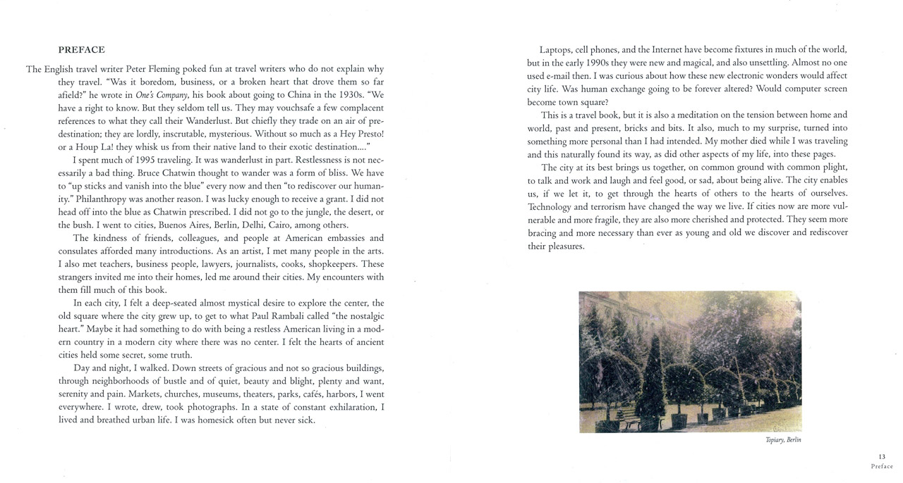 A chronicle of the artist’s 1995 travels to cities around the world, among them Lima, Buenos Aires, Barcelona, Berlin, Prague, Delhi, Cairo, and Istanbul. Containing over ninety photographs and drawings, The Nostalgic Heart contends that the beauty and humanity of “the old square” still offer a model for living in the digital age.