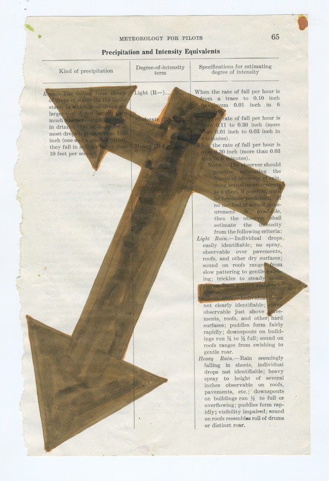6.01.15 “Precipitation (from Meteorology for Pilots)” 2014 (ink and graphite on old paper, 9 x 6″) dc