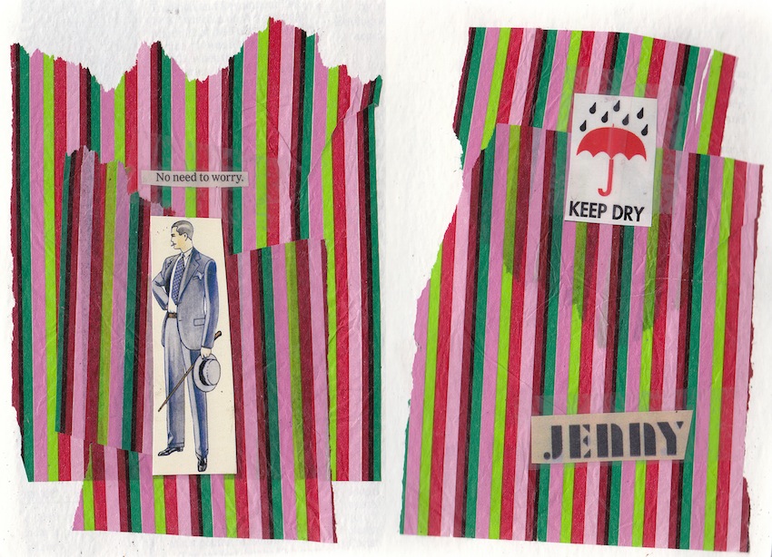 “No Need to Worry” 2010 (mixed media collage on paper, 6.5 x 9″)