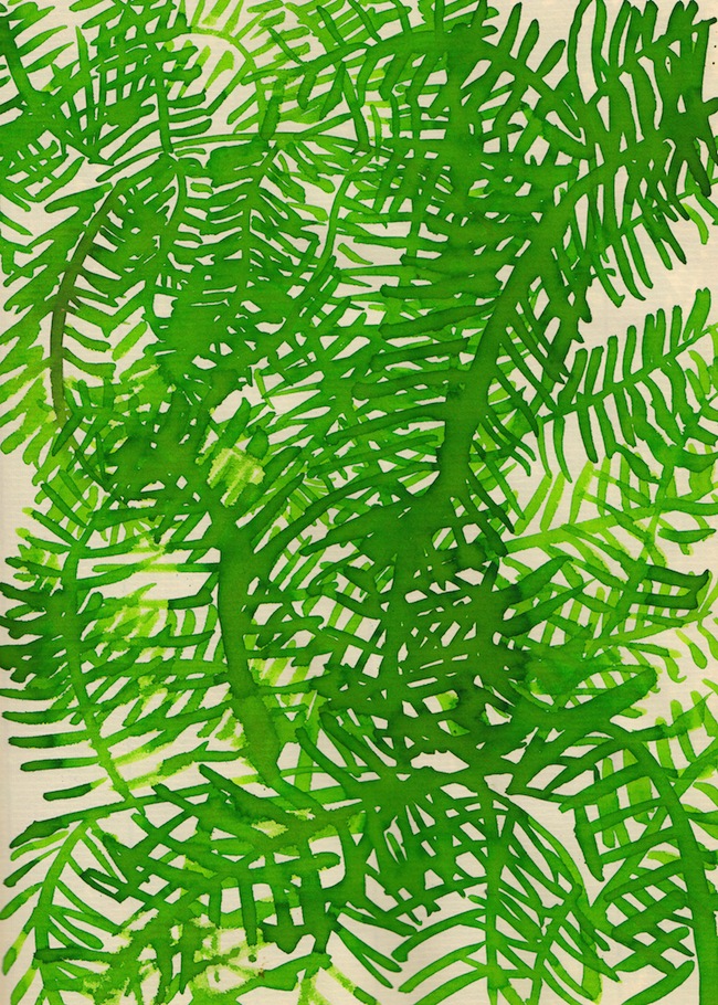 “Spring Ferns” 2011 (ink on paper, 7 x 5″) dc