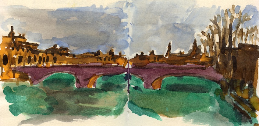 2.10.15 “Bridge, Paris” 2008 (ink on paper, 10 x 6″) dc from “Paris in Winter” to be published fall 2015 by powerHouse Books, New York