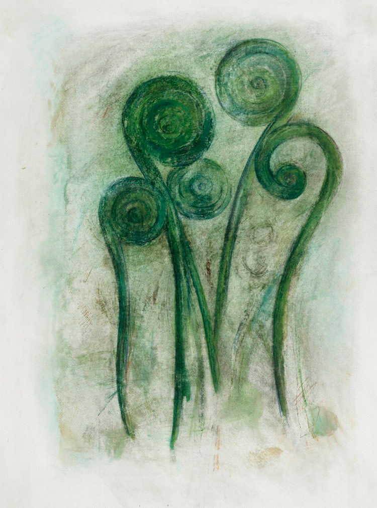 “Fiddleheads” 2003 (watercolor, colored pencil, and graphite on paper, 30 x 22″) dc