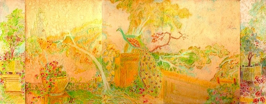 “Model for set of The Bourgeois Gentleman” 1985 (colored pencil on paper, 5 x 14″) dc