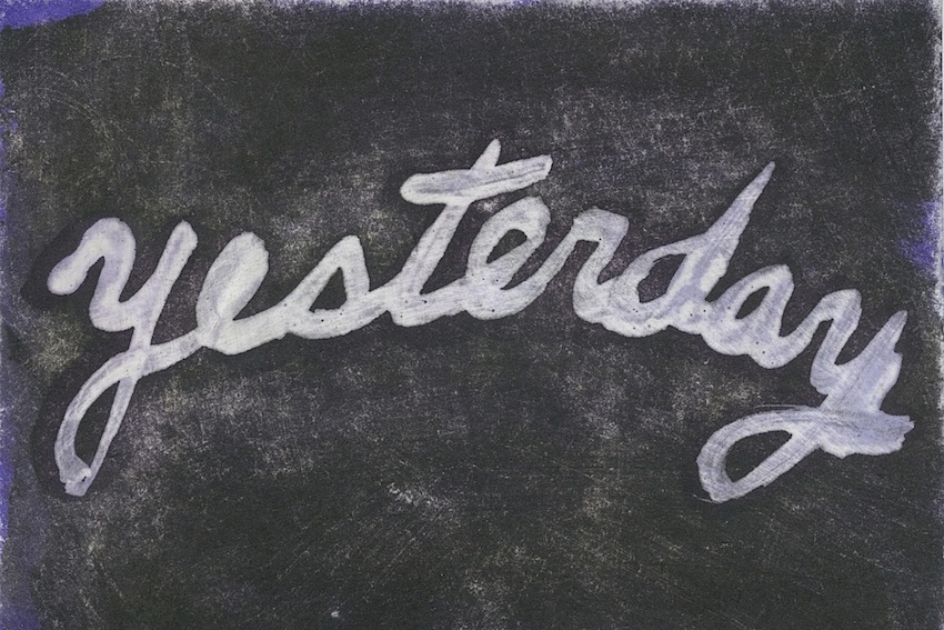 “Yesterday” 2014 (ink on paper [from Flash Cards], 4 x 6″) dc