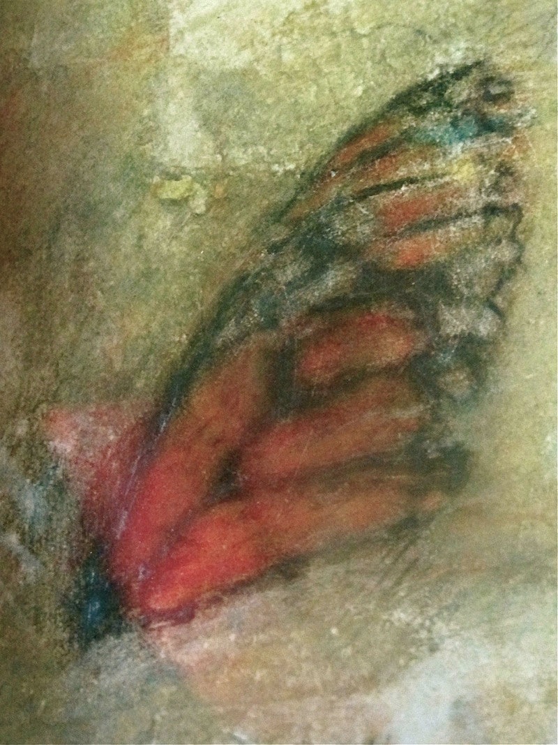 “Monarch Wing” 2002 (mixed media on paper, 9 x 6″) dc