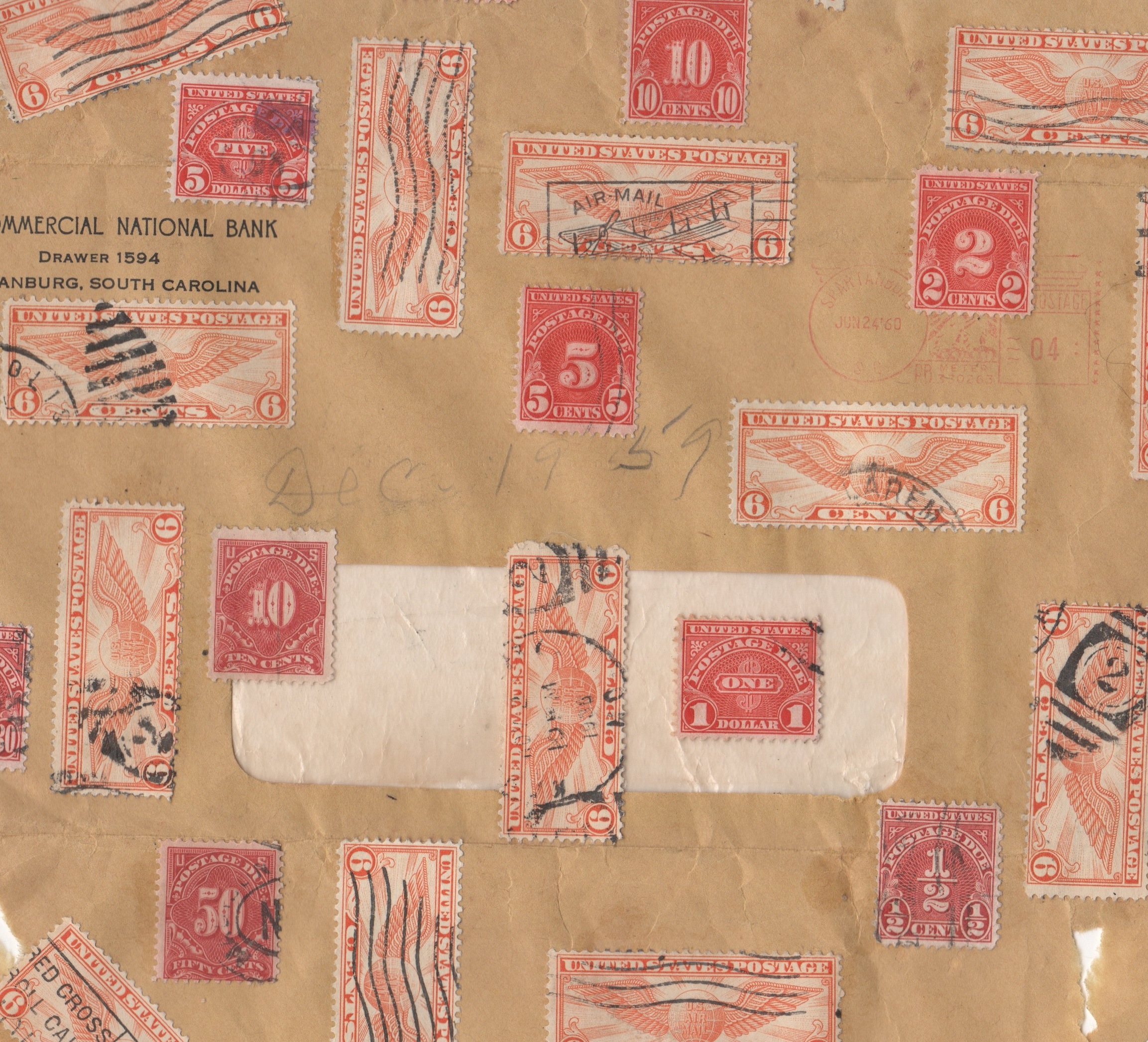 “Drawer 1594″ 2013 (stamp collage on old envelope, 6 x 6” detail) dc
