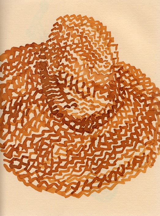 “Straw Hat” 2010 (ink on paper, 5 x 7″) dc