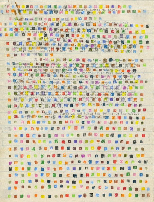 “Dear Mary” 2014 (colored pencil on 1843 letter) dc