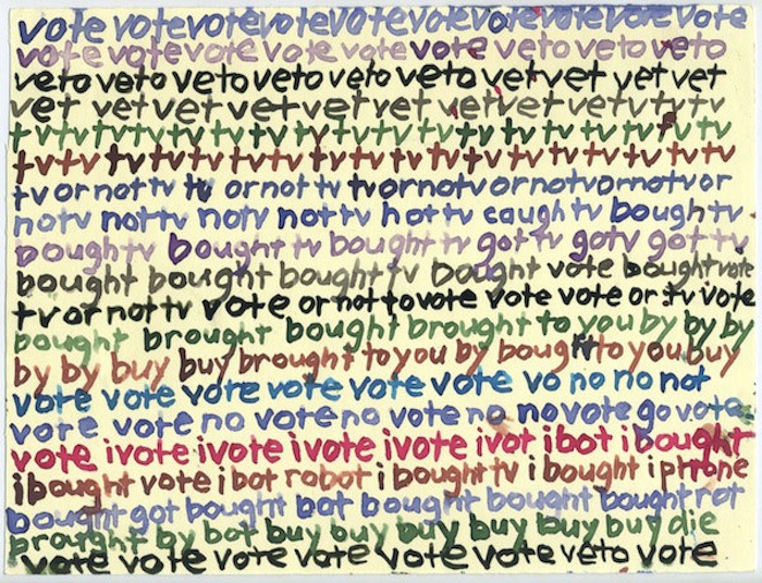 “Vote Vote” 2013 (from Word Jazz, ink on paper, 6 x 9″) dc