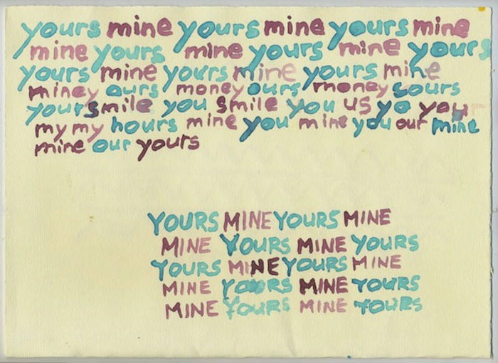 “Yours Mine” 2013 (from Word Jazz, ink on paper, 12 x 12″) dc
